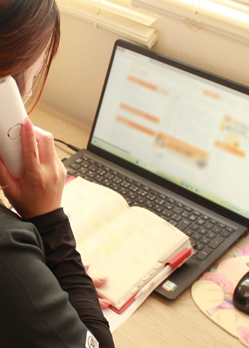 | 職場の雰囲気 | アットホームな雰囲気で先輩方は皆さん優しく、分からない事や不安な事があれば、その都度相談にのってもらっています。 |